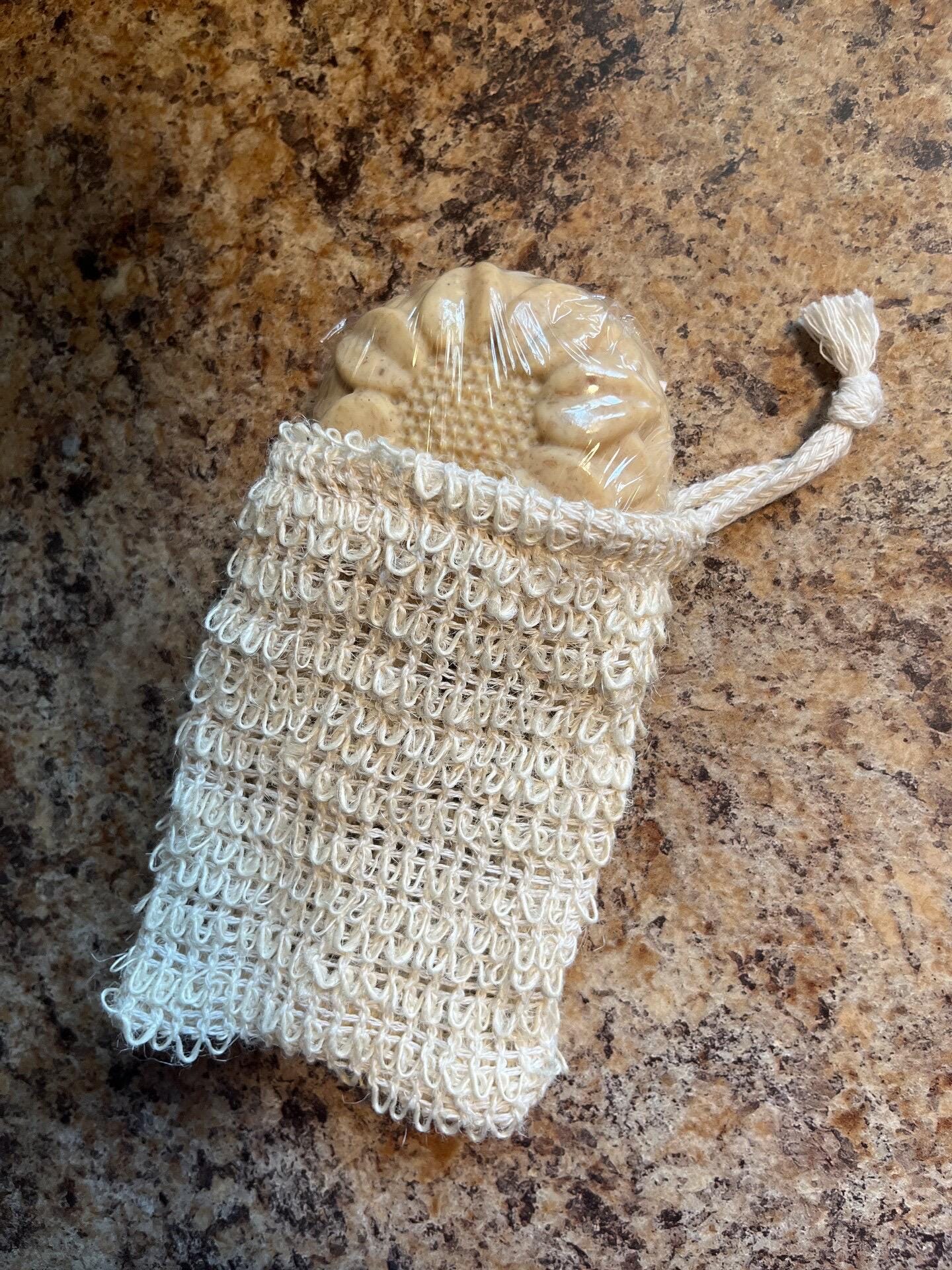 Loofah sponge exfoliating soap baggy, you put your bar of Kelsy’s Scrubs soap inside, pull the string tightly, wet it and wash up. Then hang up in your shower to dry. Once the bar of soap inside is used up, you can always open the loofah sponge baggy back up and insert a new soap. It helps exfoliate your skin, removes dry skin and stubborn dirt in your pores.